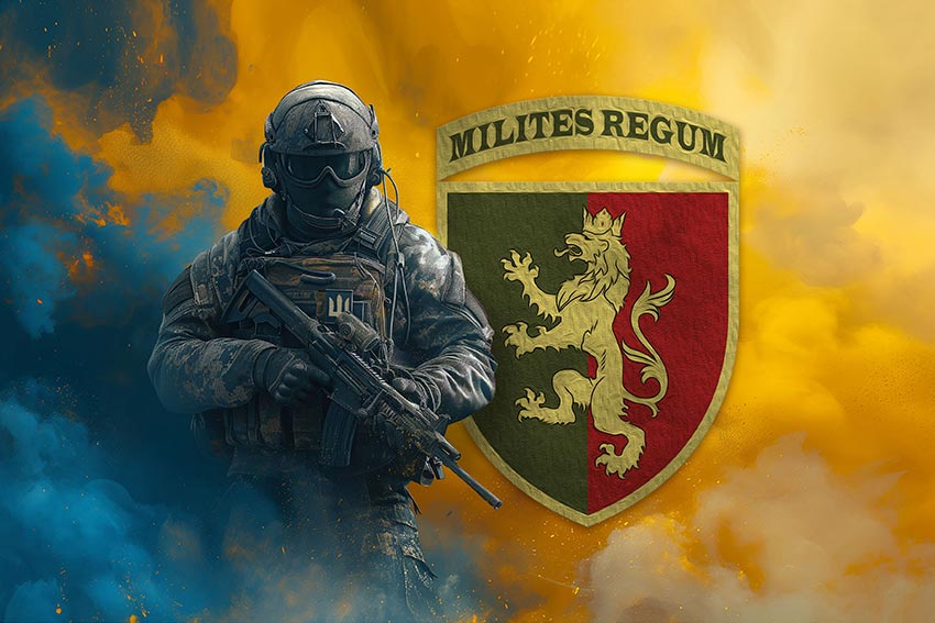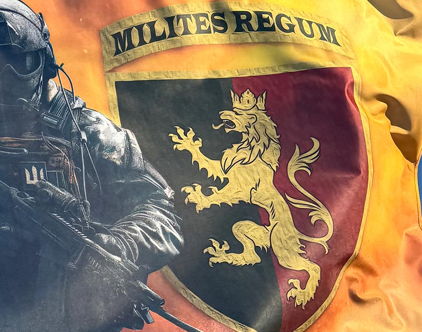 Прапор 24 окремої механізованої бригади (24 ОМБр) імені короля Данила ЗСУ Воїн з гербом підрозділу