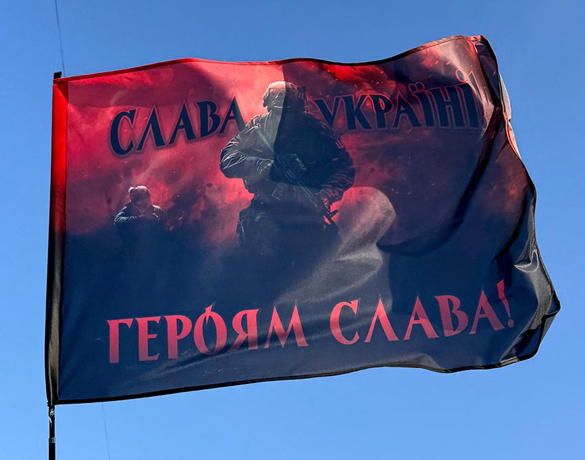 Прапор «Слава Україні! Героям слава!» червоний світанок