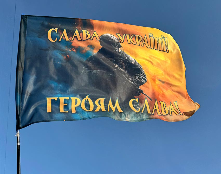 Прапор «Слава Україні! Героям слава!» синьо-жовтий світанок