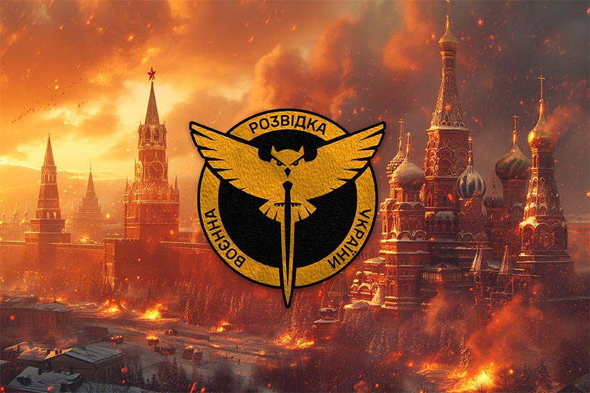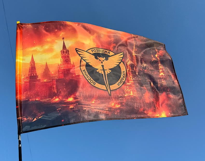 Прапор Воєнної розвідки України ГУР кремль палає
