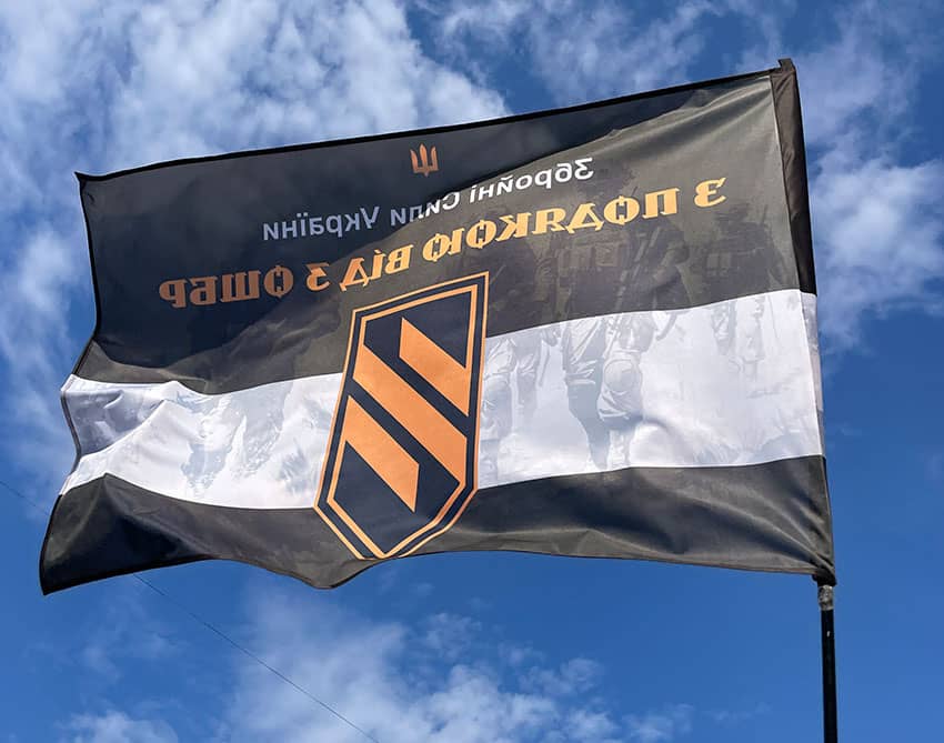 Прапор «З подякою від 3 ОШБр» чорно-білий