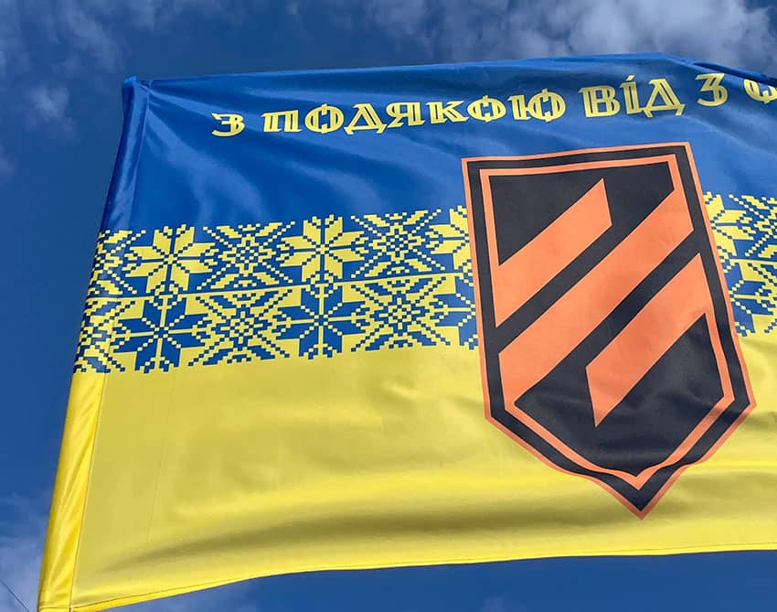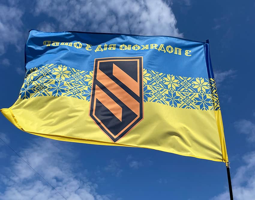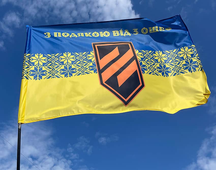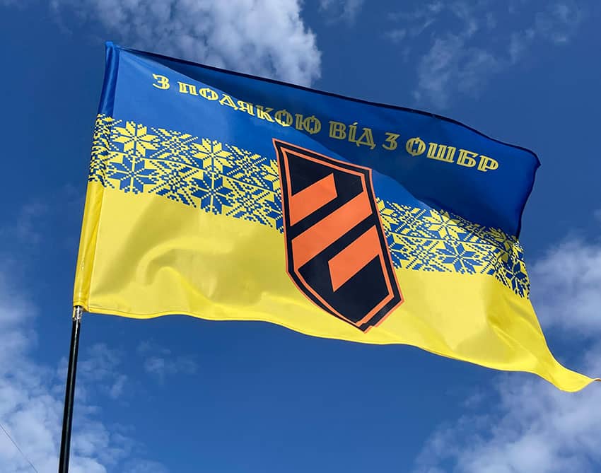 Прапор «З подякою від 3 ОШБр» синьо-жовта вишиванка