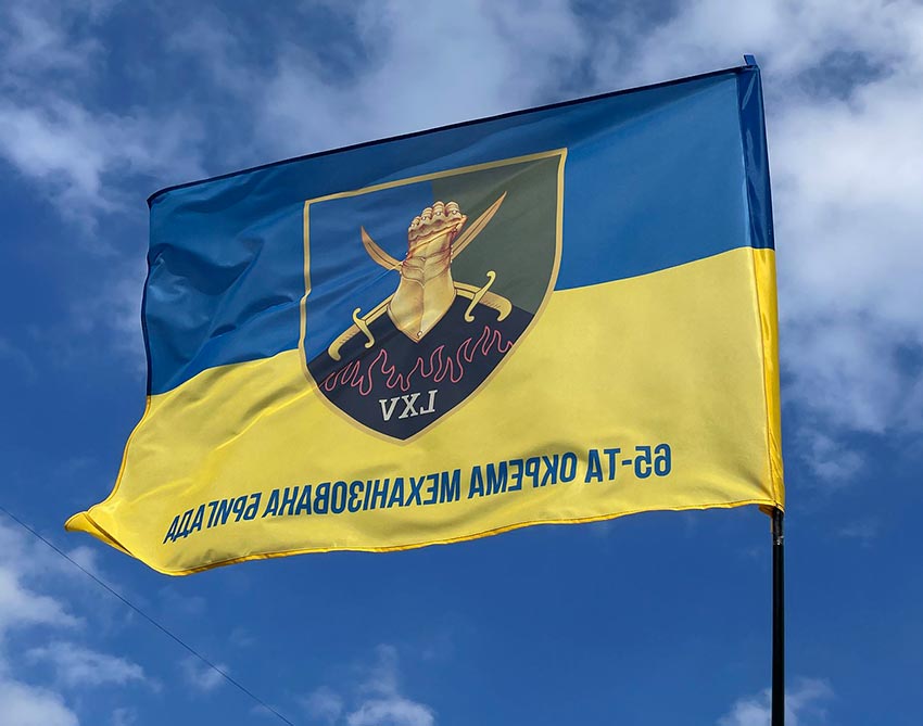 Прапор ЗСУ 65 ОМБр (окремої механізованої бригади) синьо-жовтий